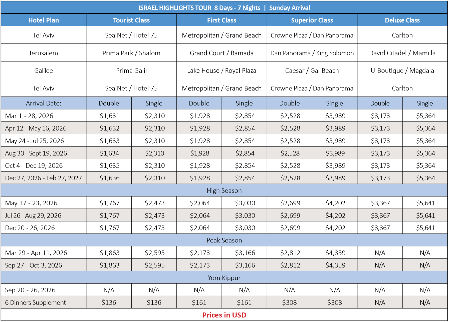 All hotels taxes and service charges